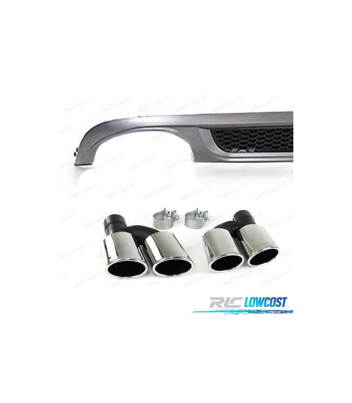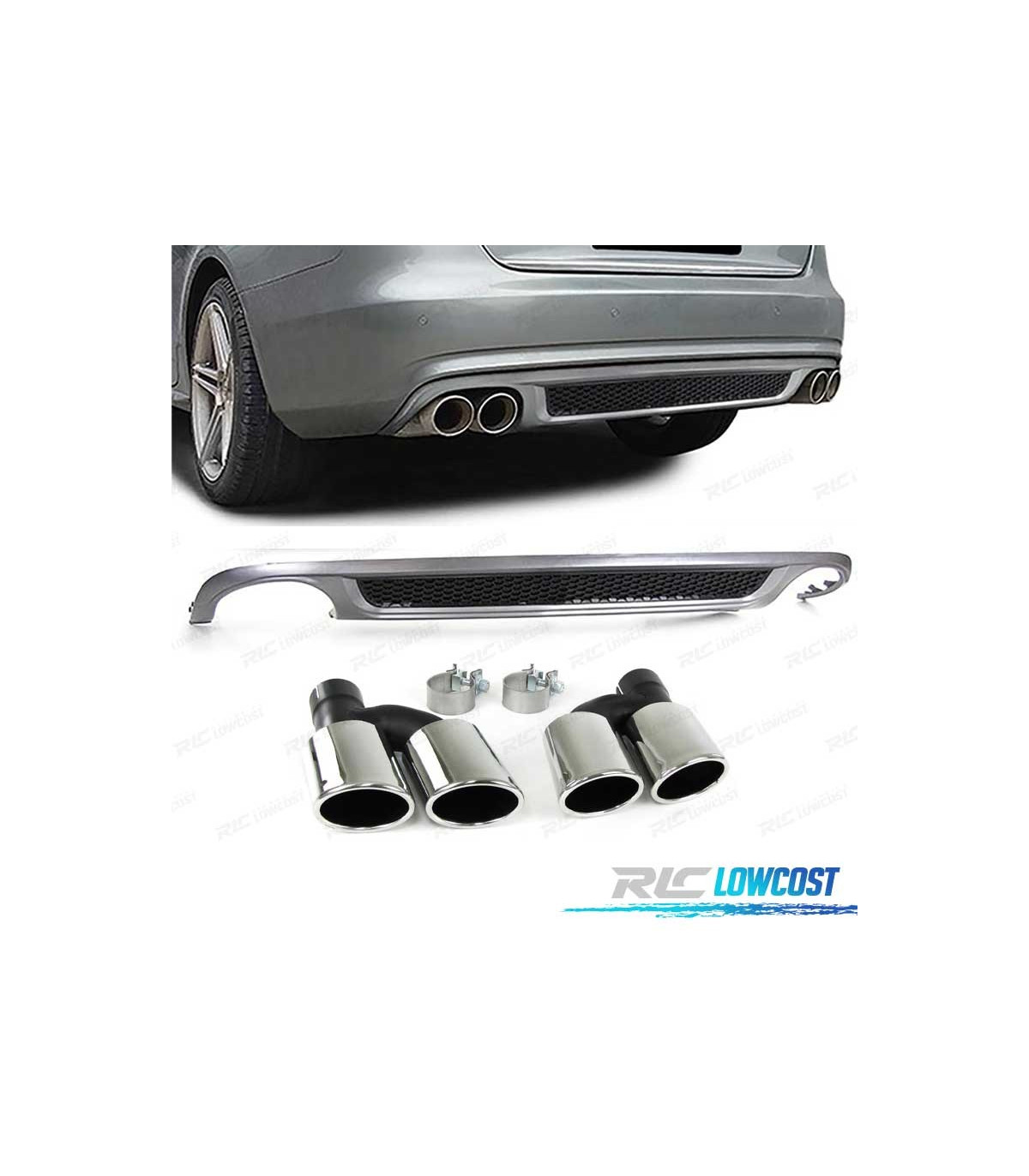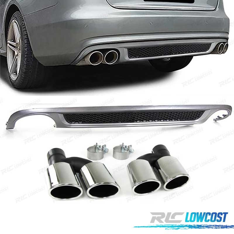 DIFFUSEUR ARRIÈRE AUDI A4 B8 BERLINE AVANT 07-11 LOOK S LINE DOUBLE SORTIE + EMBOUTS CHROMÉ