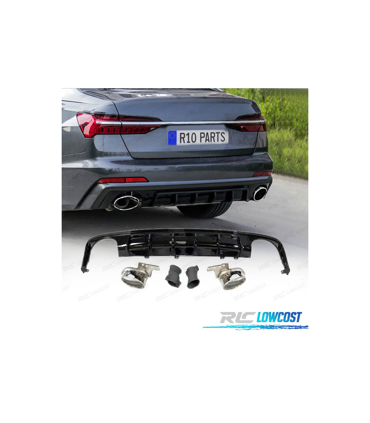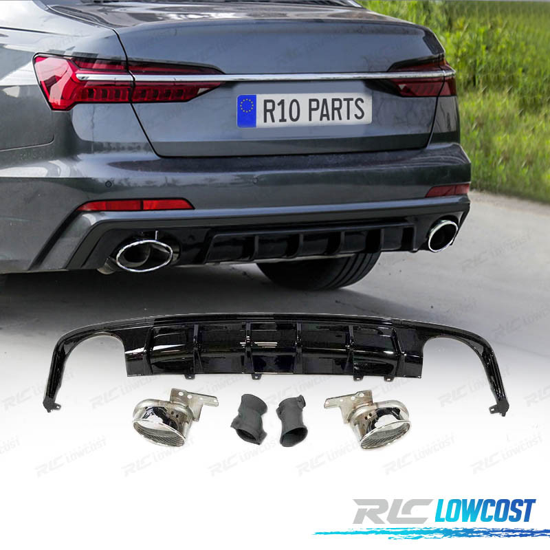 DIFFUSEUR AUDI A6 C8 AVANT 19-21 LOOK RS6 NOIR BRILLANT + EMBOUTS D'ÉCHAPPEMENT