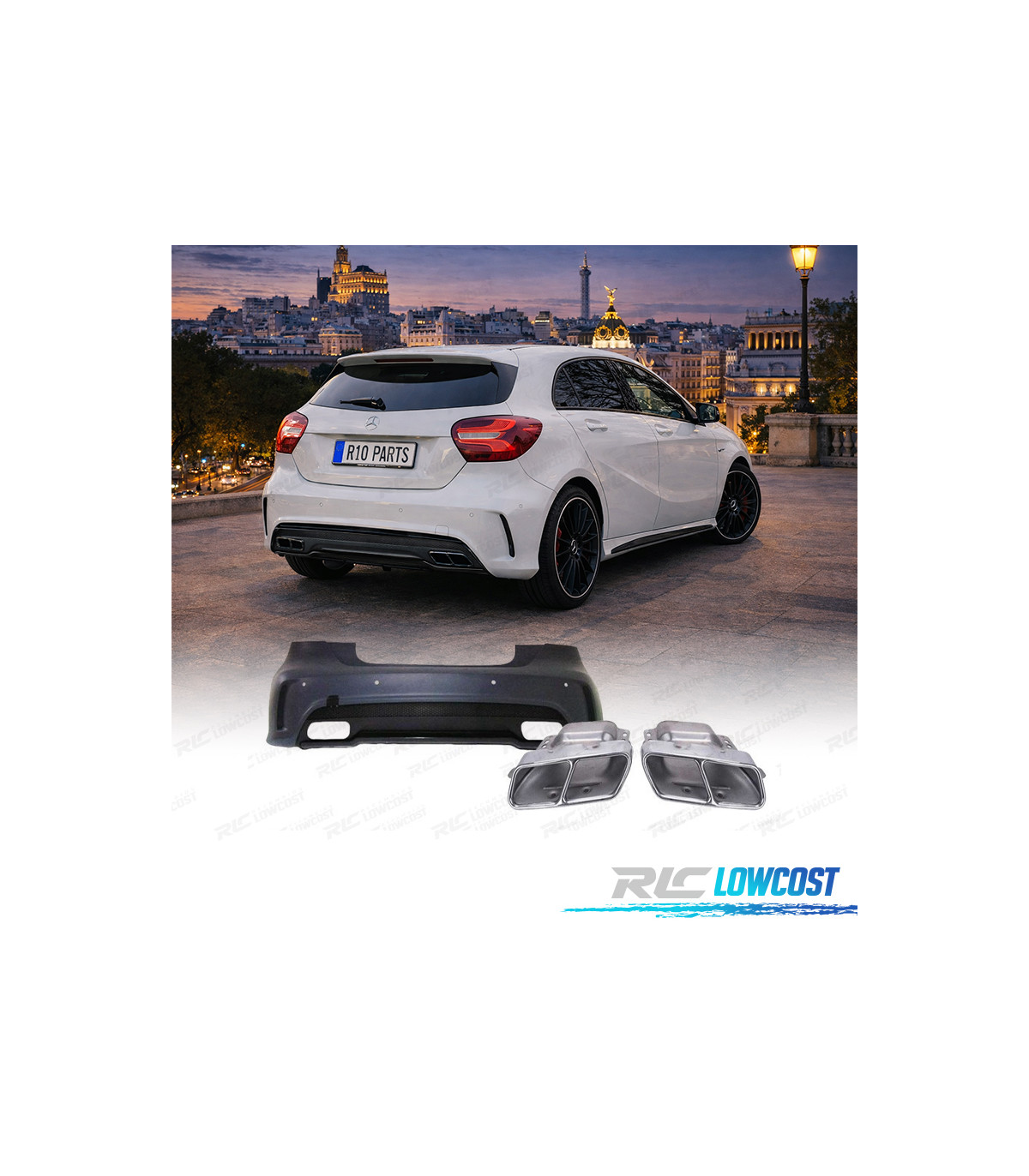 KIT CARROSSERIE MERCEDES CLASSE A W176 AMG A45 + LAVE PHARE + EMBOUTS D´ÉCHAPPEMENT PDC