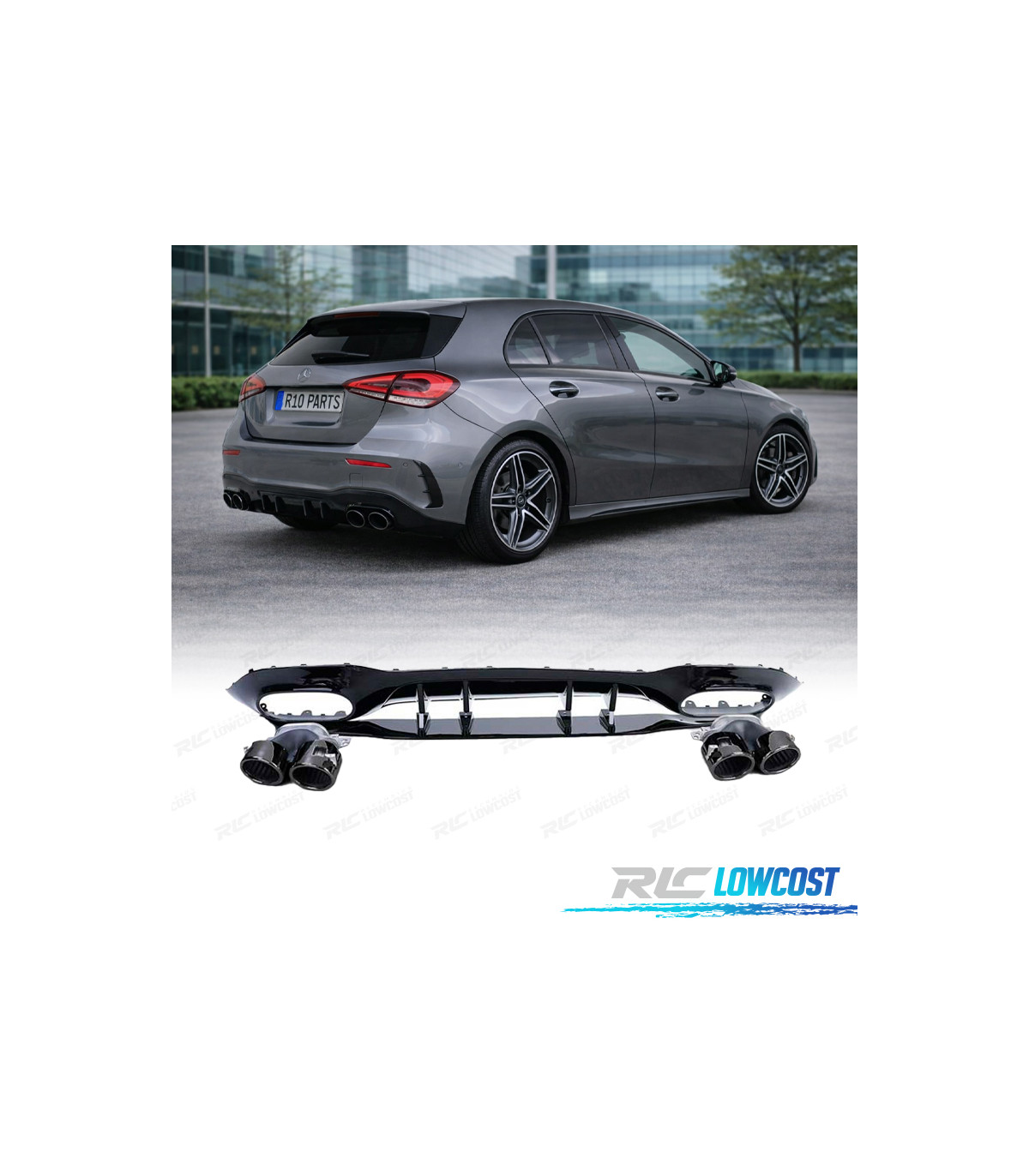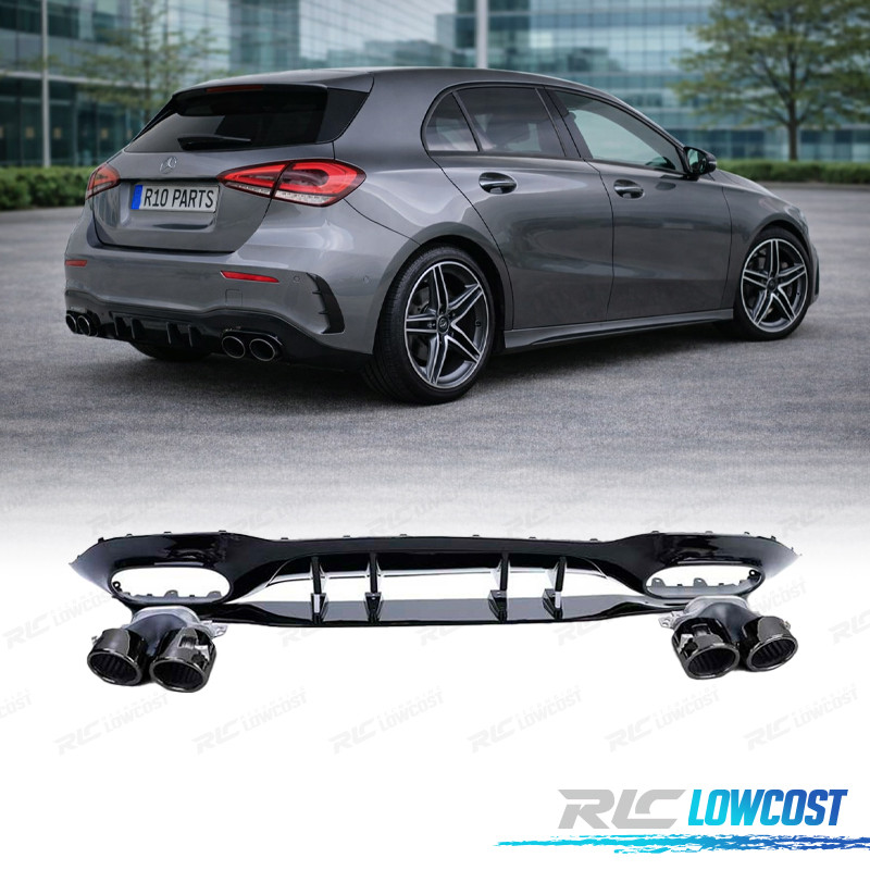 DIFFUSEUR MERCEDES CLASSE A W177 18- LOOK A45 AMG NOIR BRILLANT + EMBOUTS D'ÉCHAPPEMENT