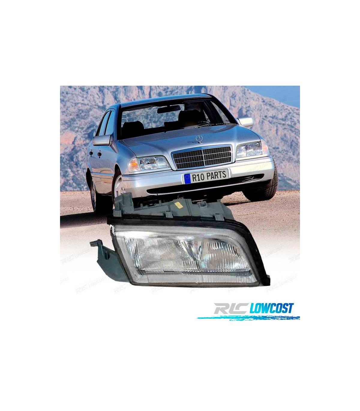 PHARE DROIT MERCEDES CLASSE C W202 96-00 FOND CHROMÉ