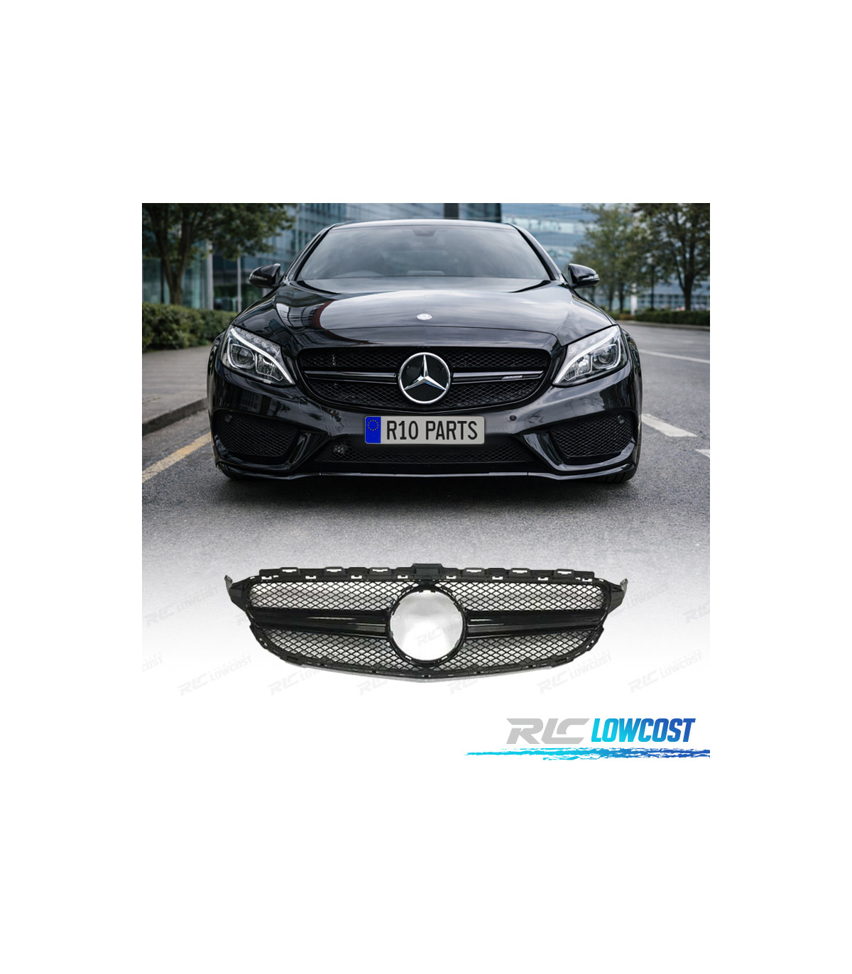 GRILLE MERCEDES W205 14-18 LOOK AMG C63 CAMÉRA NOIR BRILLANT