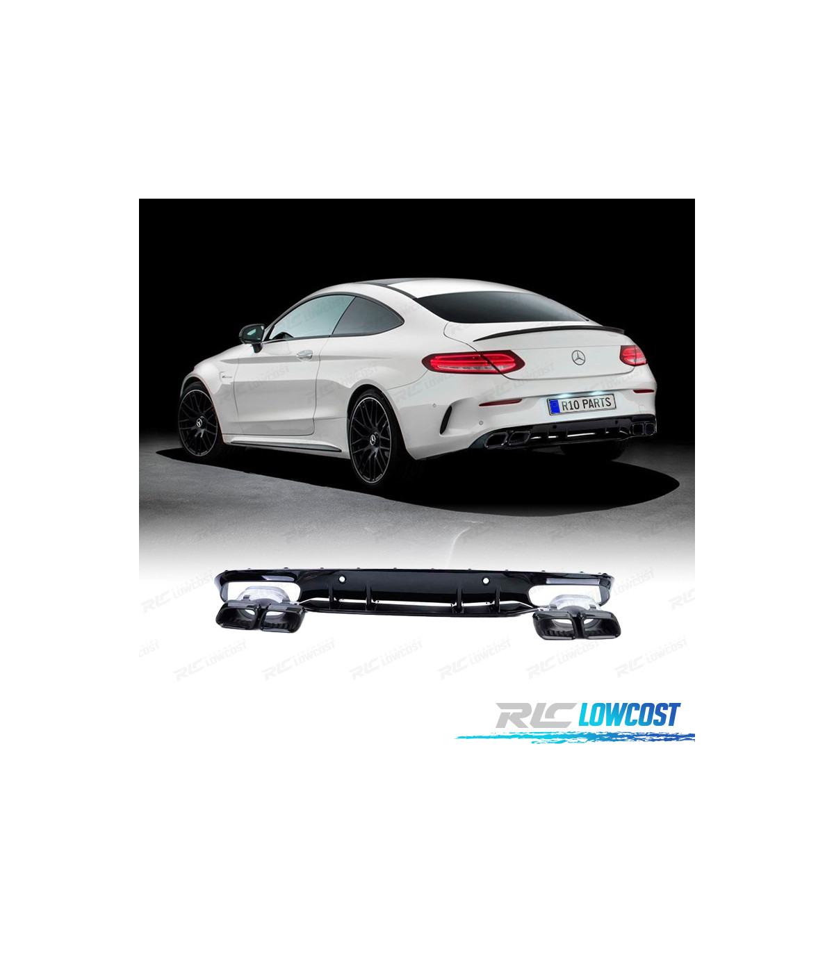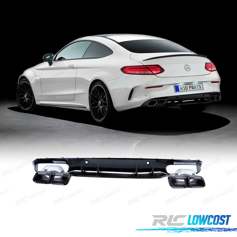 DIFFUSEUR MERCEDES CLASSE C C205 COUPE 15-18 LOOK AMG C63 NOIR BRILLANT + EMBOUTS D'ÉCHAPPEMENT NOIRS