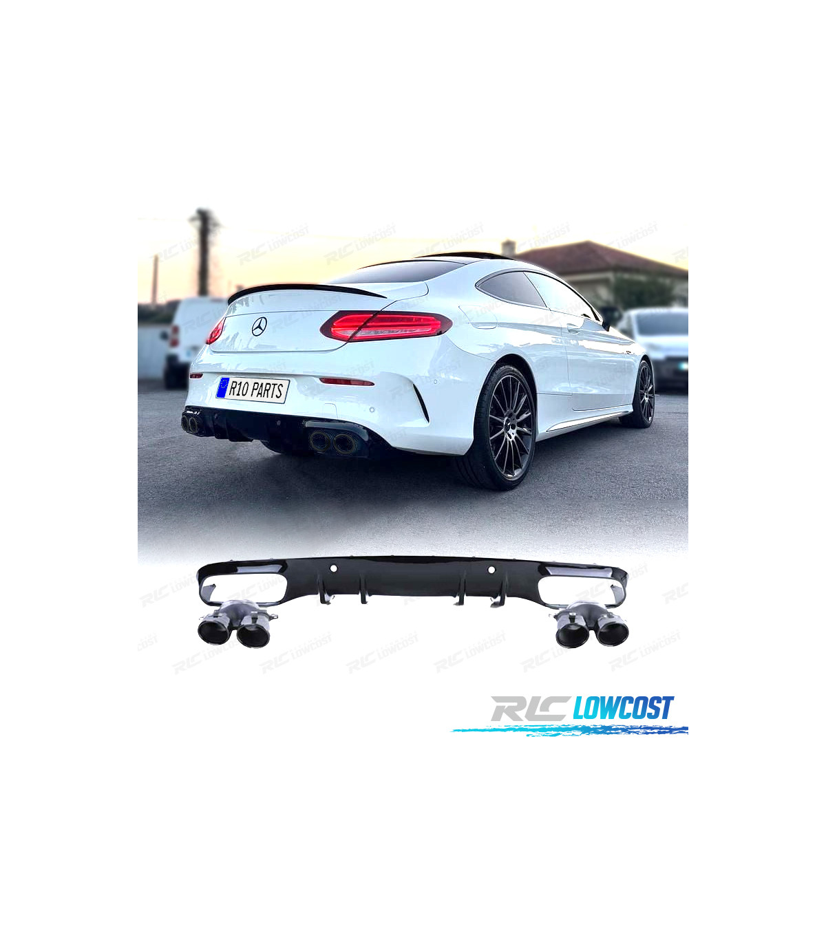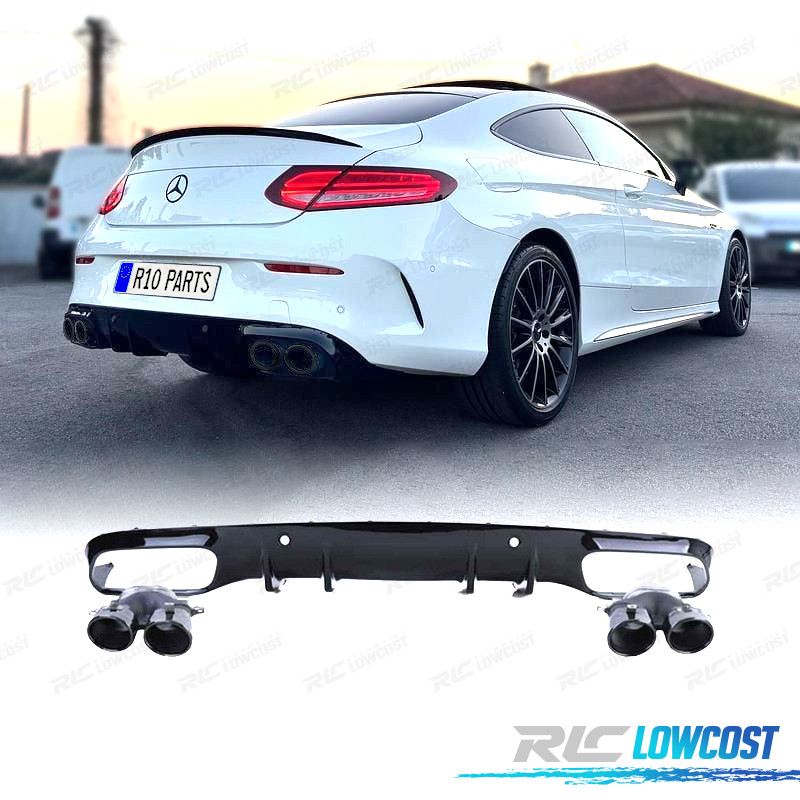 DIFFUSEUR MERCEDES CLASSE C C205 COUPE 14-18 LOOK AMG PDC + EMBOUTS D'ÉCHAPPEMENT NOIR