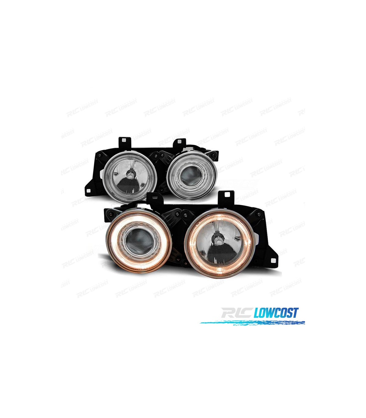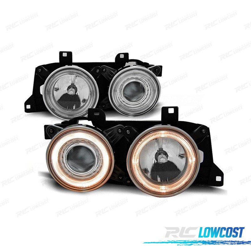 PHARES BMW E34 E32 ANGEL EYES FOND CHROMÉ
