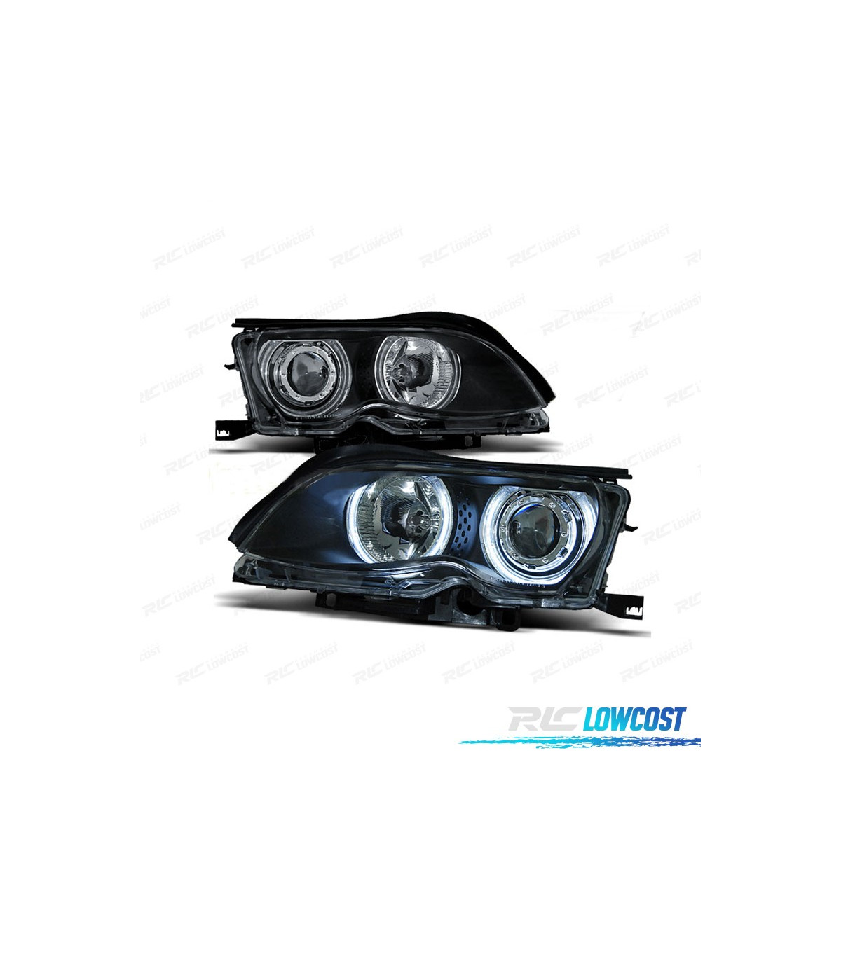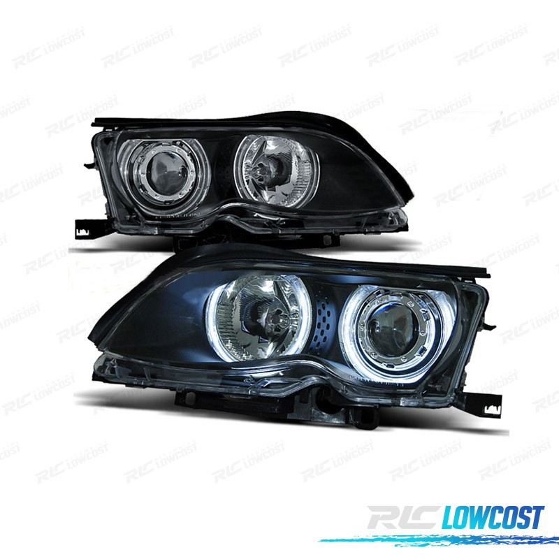 PHARES BMW E46 4P 01-05 ANGEL EYES CCFL FOND NOIR