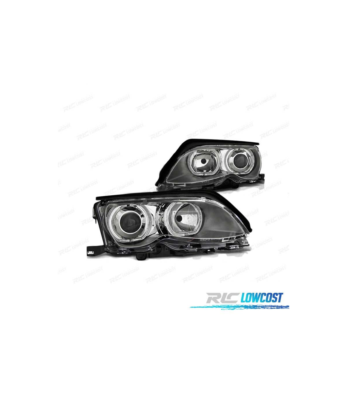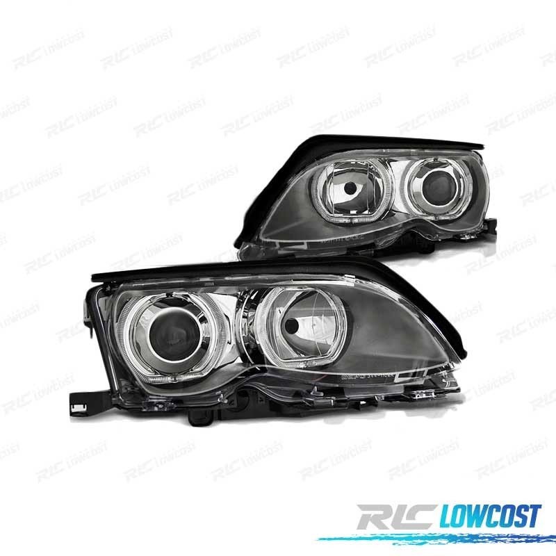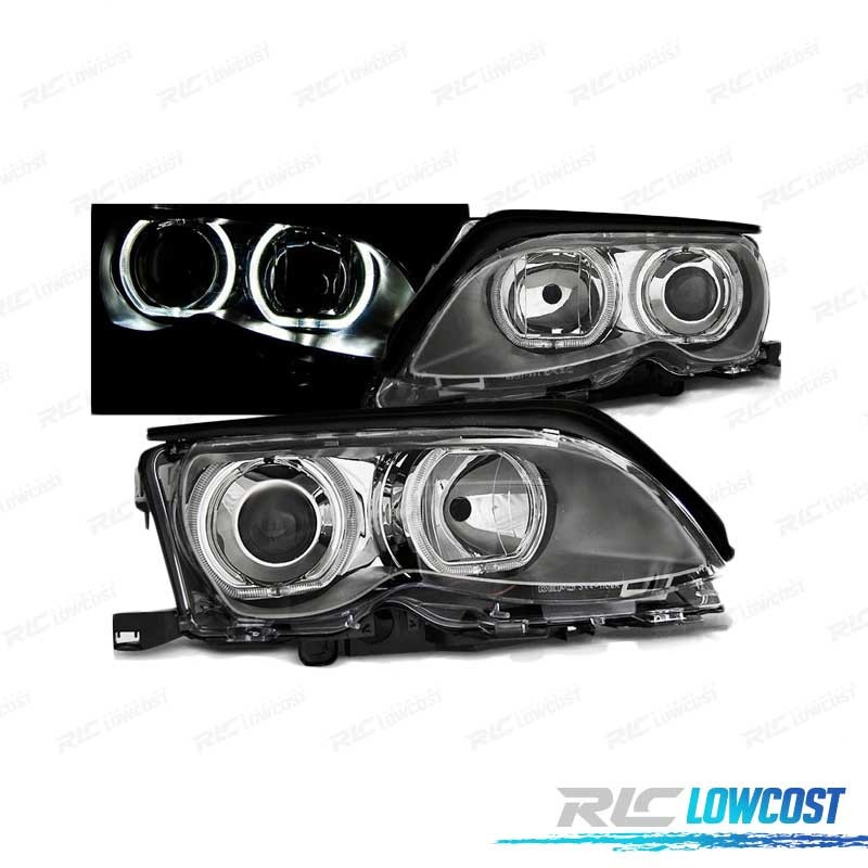 PHARES BMW E46 01-05 LED ANGEL EYES CHROMÉ