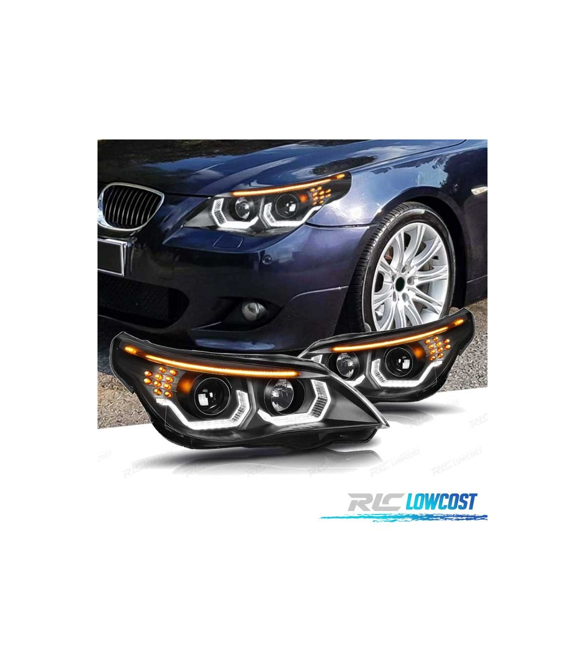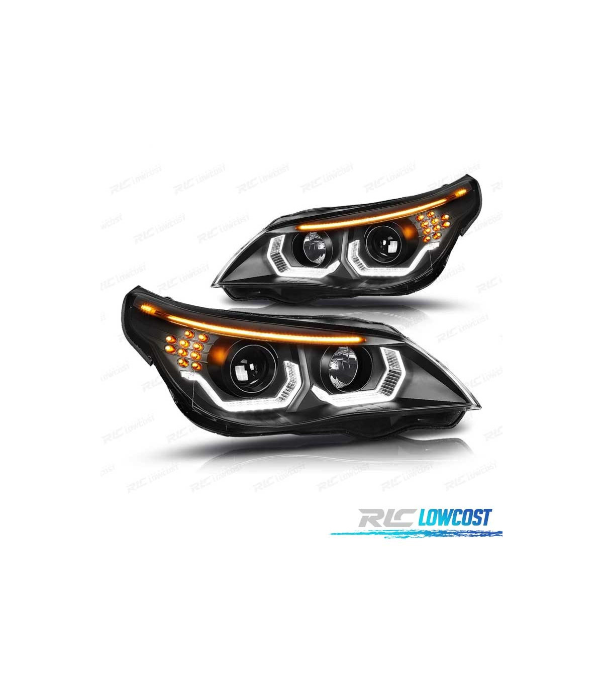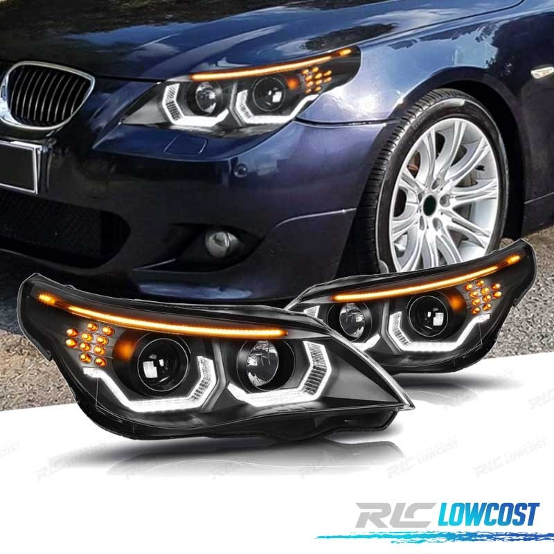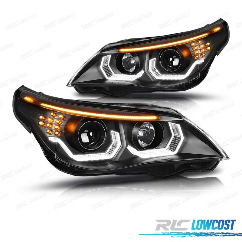 PHARES BMW E60 E61 03-07 ANGEL EYES LED U HALO FOND NOIR