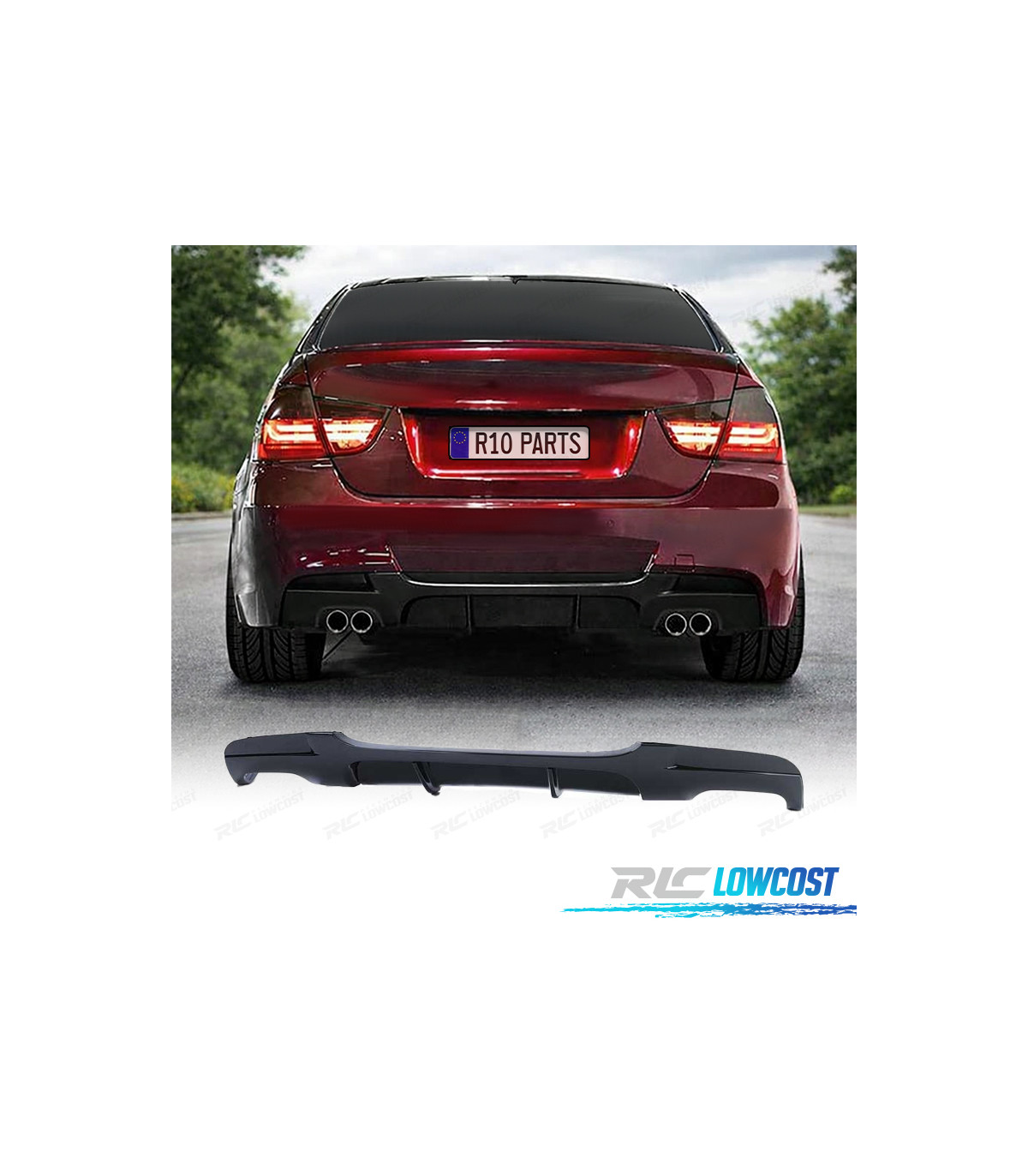 DIFFUSEUR BMW E90 E91 LOOK M PERFORMANCE NOIR BRILLANT DOUBLE SORTIE
