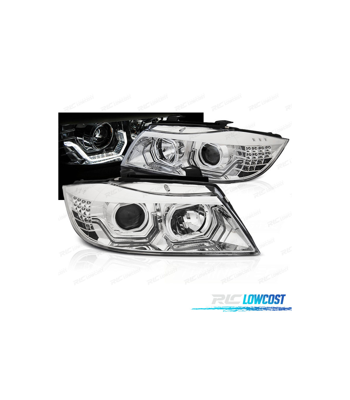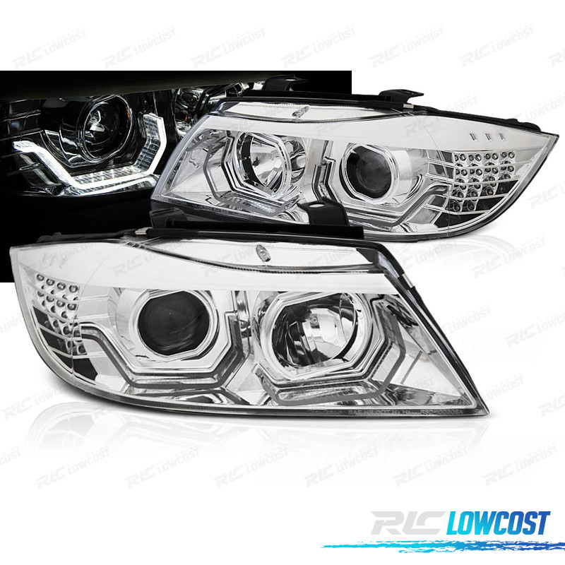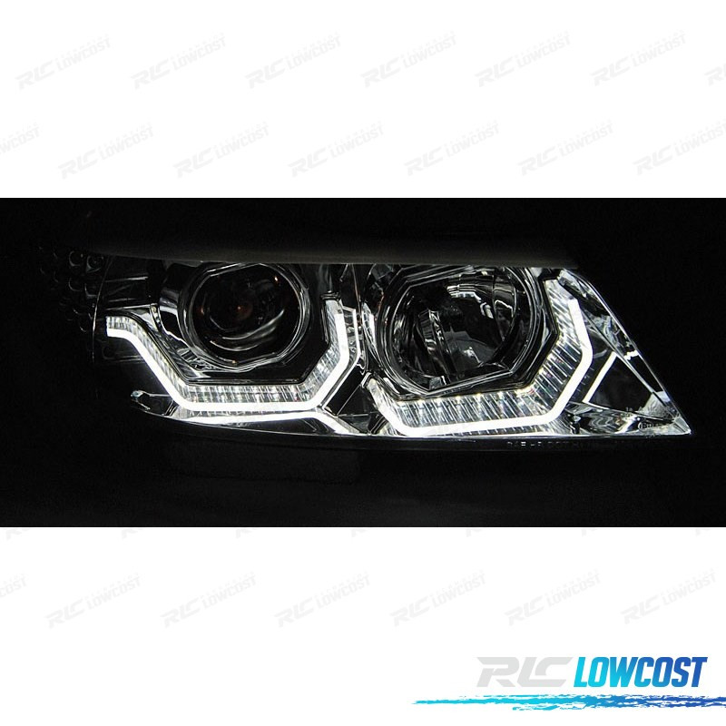 PHARES BMW E90 E91 05-08 ANGEL EYES 3D CHROMÉ