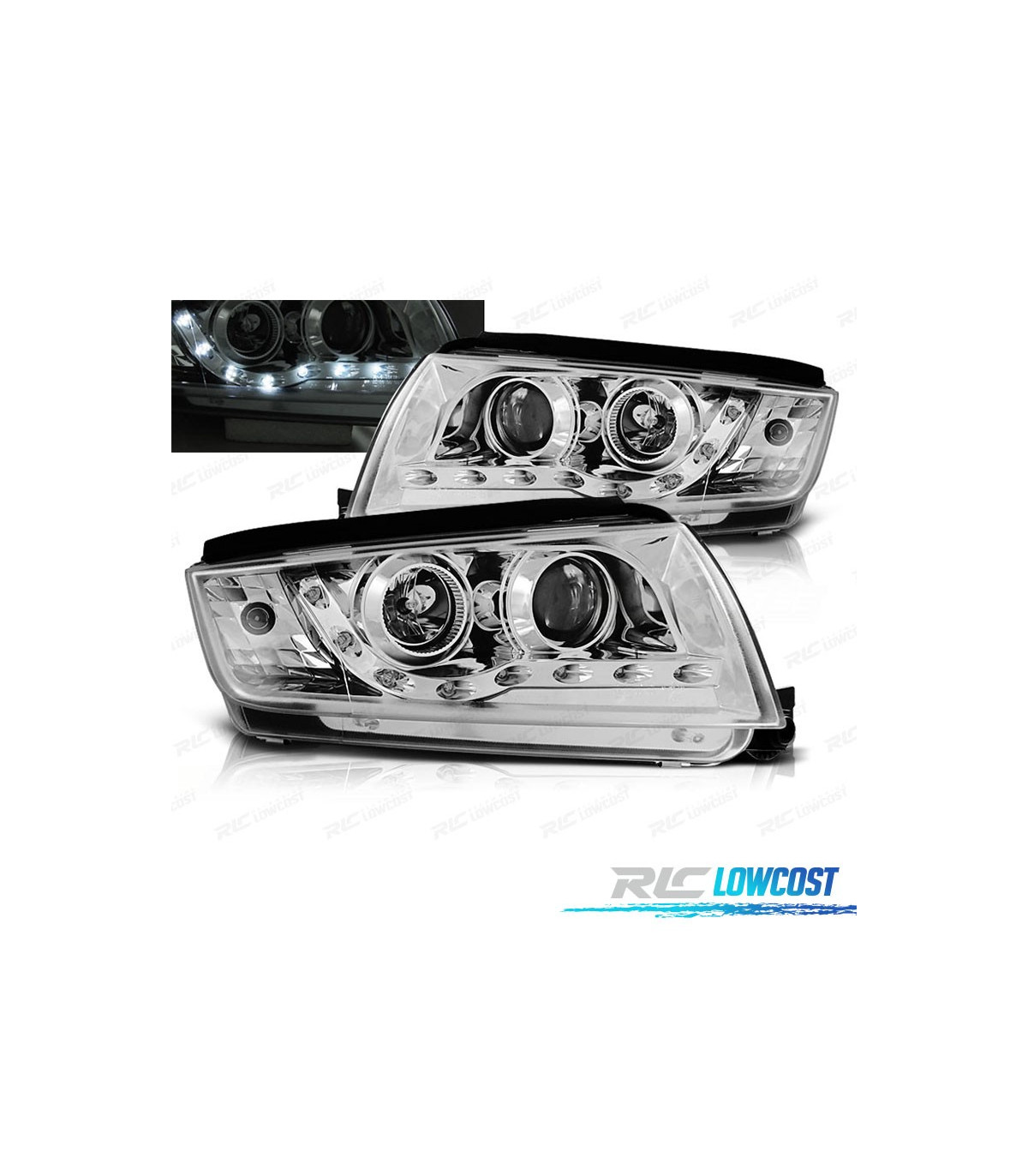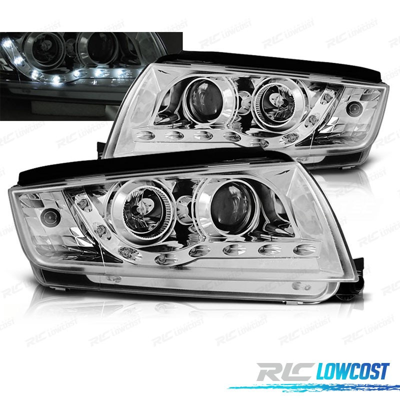 PHARES LED DAYLIGHT SKODA FABIA 99-07 FOND CHROMÉ