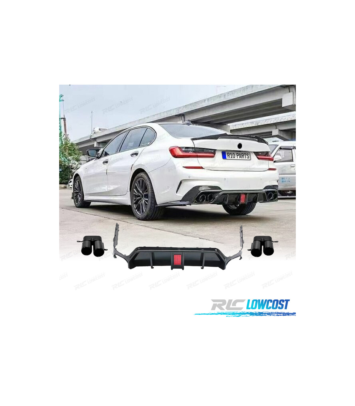 DIFFUSEUR BMW G20 LCI 23-25 LOOK M NOIR BRILLANT AVEC FEU STOP + EMBOUTS D'ÉCHAPPEMENT