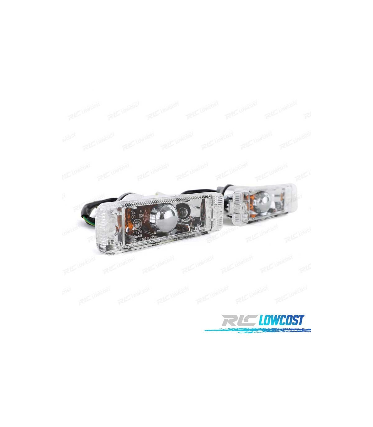Homologation européenne. Clignotants latéraux avec E-Mark (certificat européen) gravé sur le verre.