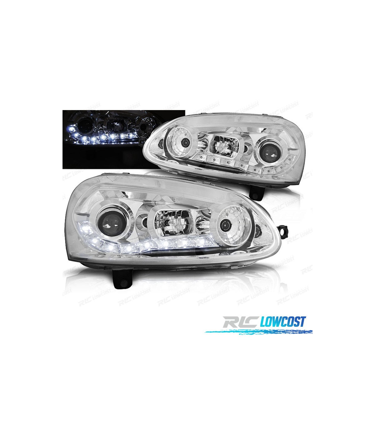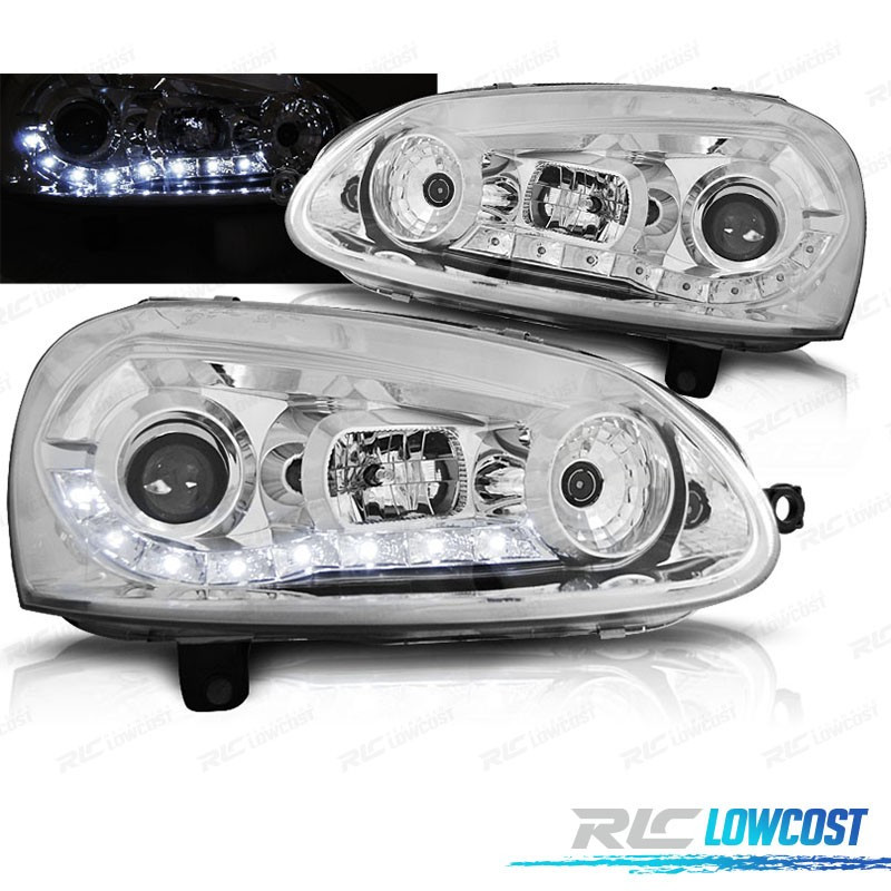 PHARES VOLKSWAGEN VW GOLF MK5 03-08 DAYLIGHT LED FOND CHROME
