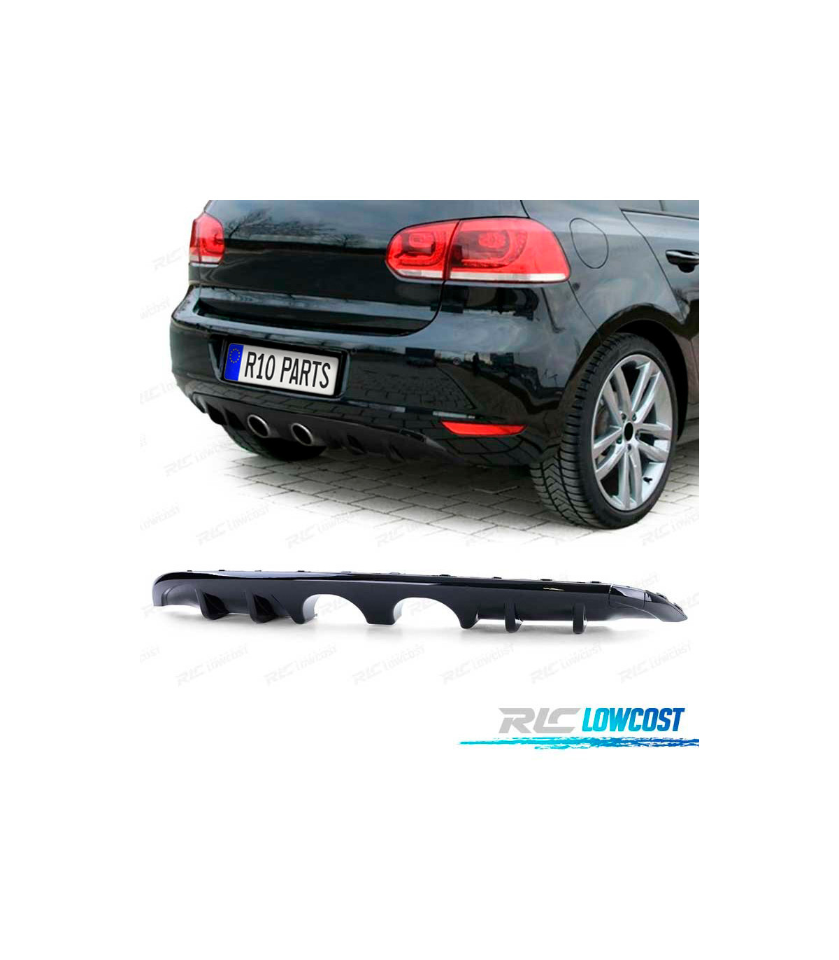 DIFFUSEUR ARRIERE VOLKSWAGEN VW GOLF MK6 1K 08-13 NOIR BRILLANT DOUBLE SORTIE