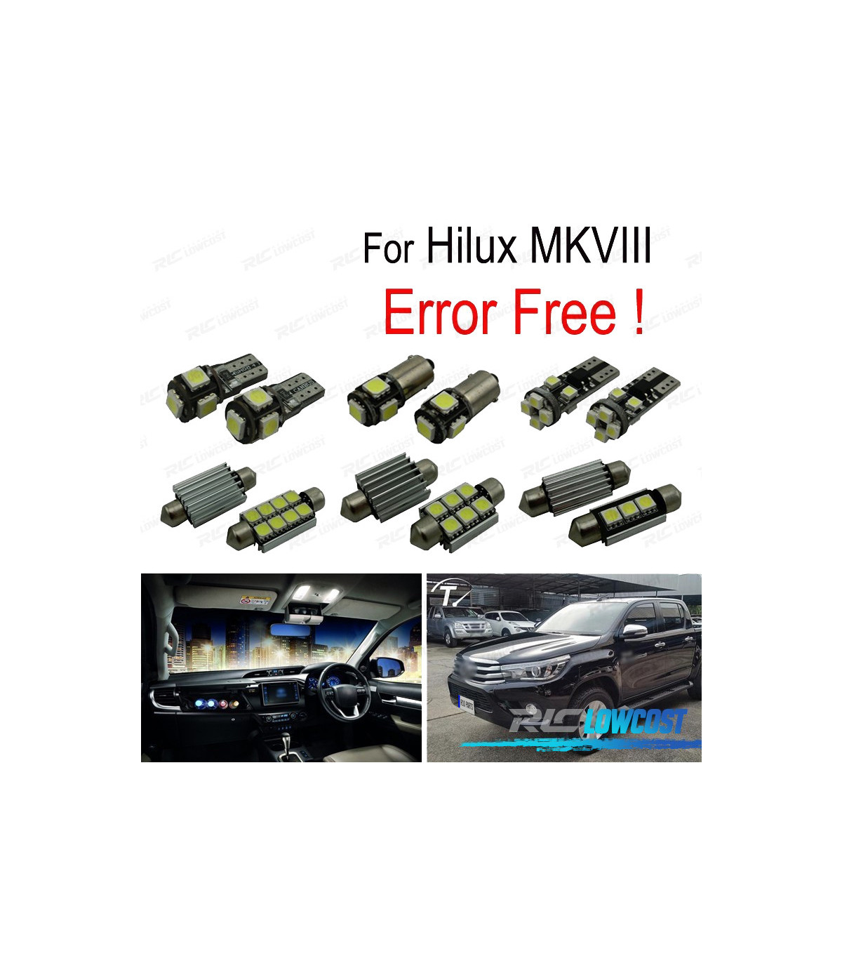KIT 5 AMPOULES LED INTÉRIEUR POUR TOYOTA HILUX MK8 MKVIII 15-