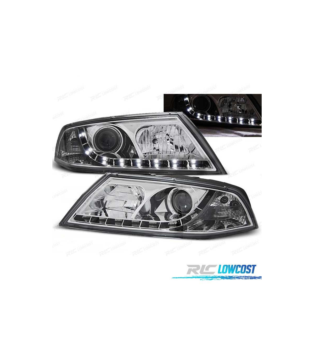 PHARES SKODA OCTAVIA 2 04-08 XENON LUMIÈRE DIURNE LED CHROMÉS