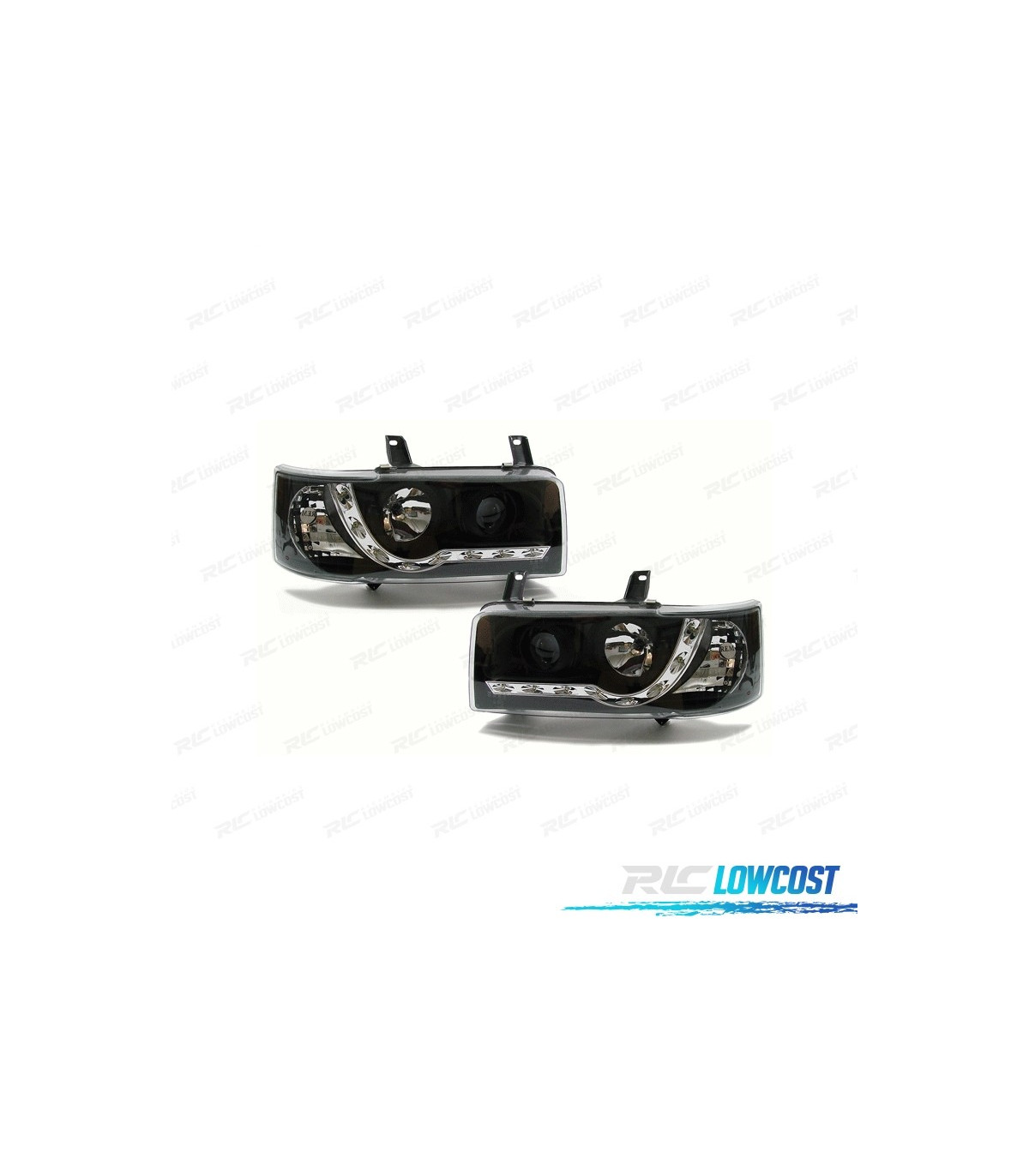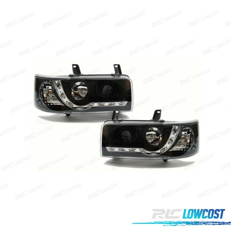 PHARES VOLKSWAGEN VW T4 TRANSPORTER 90-03 LUMIÈRE LED DIURNE FOND NOIR