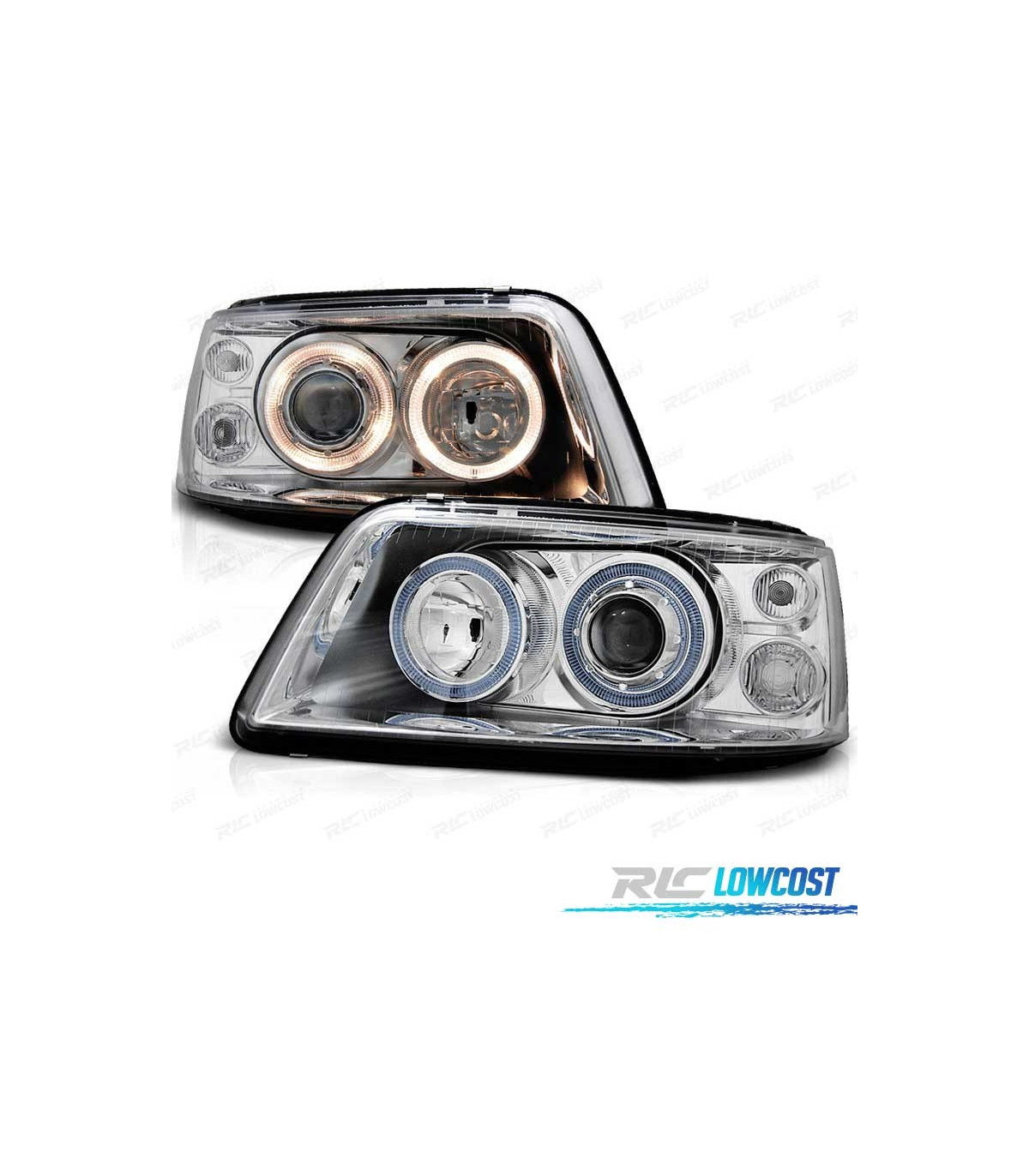 PHARES VOLKSWAGEN VW T5 03-09 ANGEL EYES FOND CHROMÉ